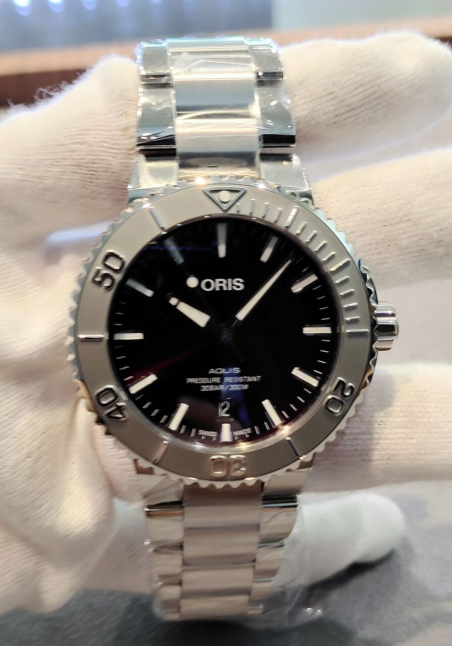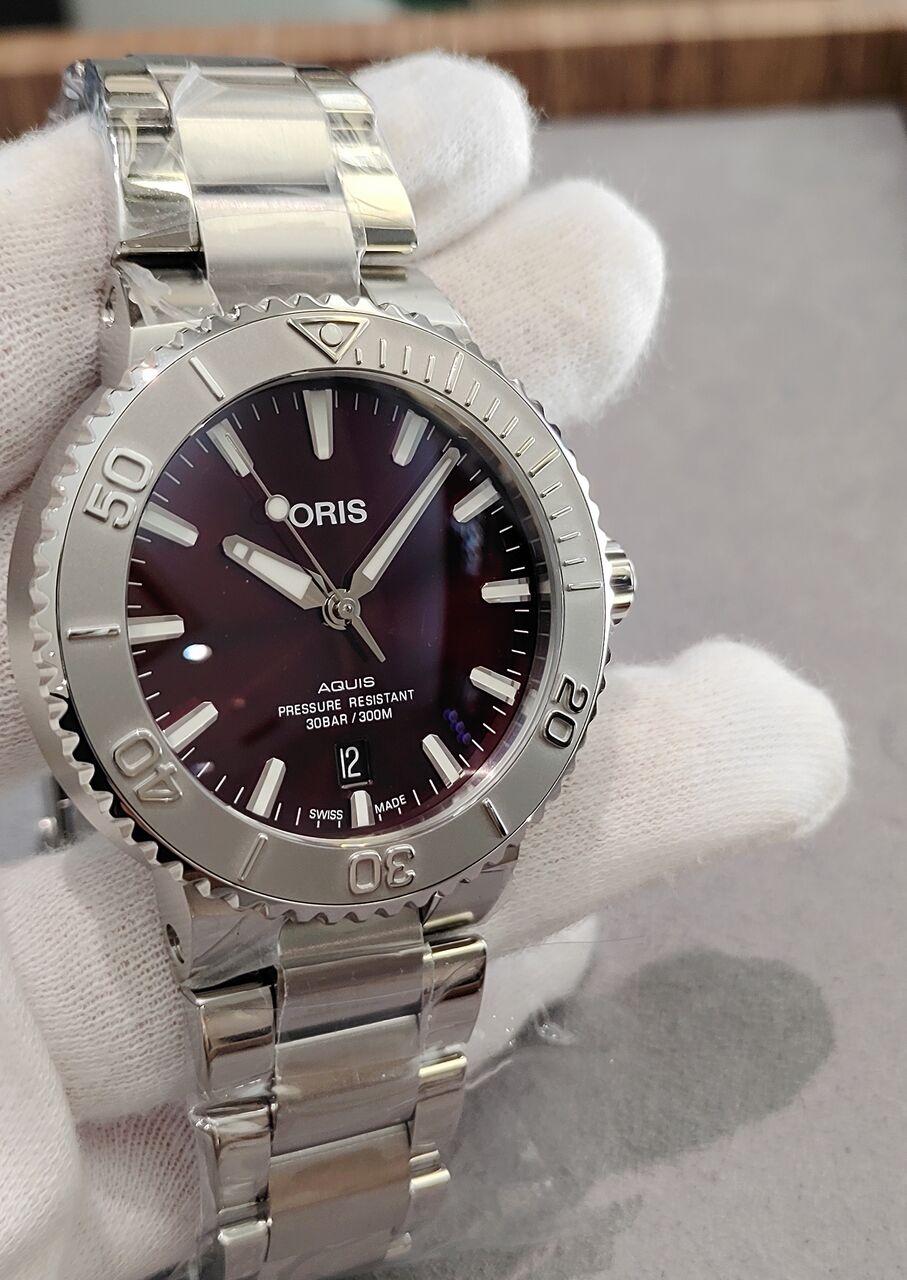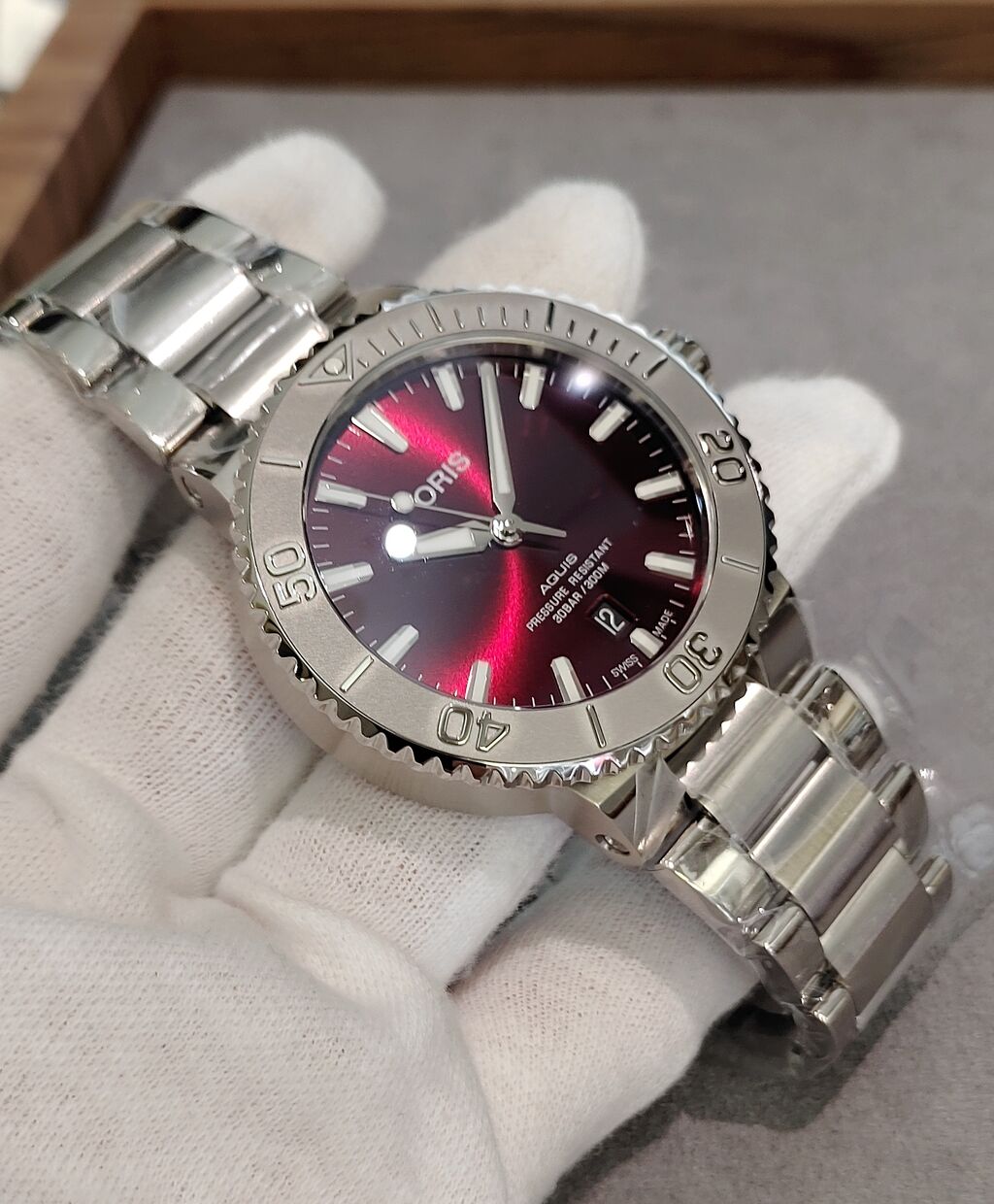 本日はオリスの人気シリーズ【アクイス】から美しい赤の文字盤が目を引くこちらをご紹介です。