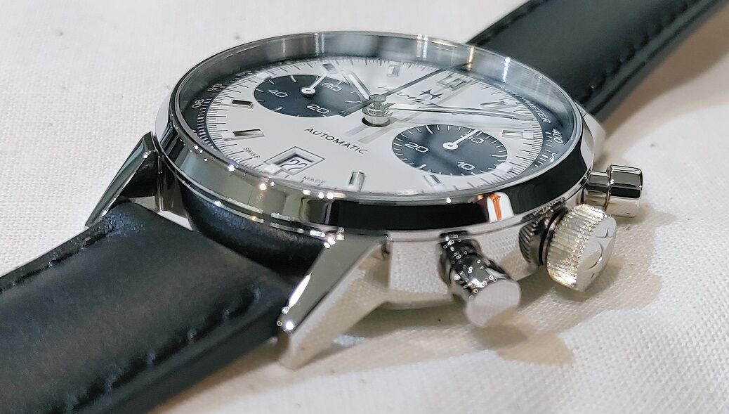 1968年発売の「クロノグラフB」の復刻モデルだけあって、ヴィンテージ感たっぷりな横2つ目クロノグラフとなっています![]()