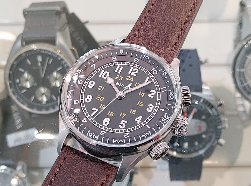 こちらはアメリカ軍に供給されていた幻のパイロットウォッチ「A-15」の復刻モデルで、長時間の任務に対応出来るよう、回転ベゼルが「時」と「分」の2重となっているのが特徴的。