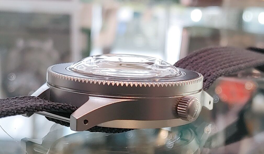 そして盛り上がったガラスが、普段使い用の時計とは違う存在感でマニア心をくすぐってくれています![]()