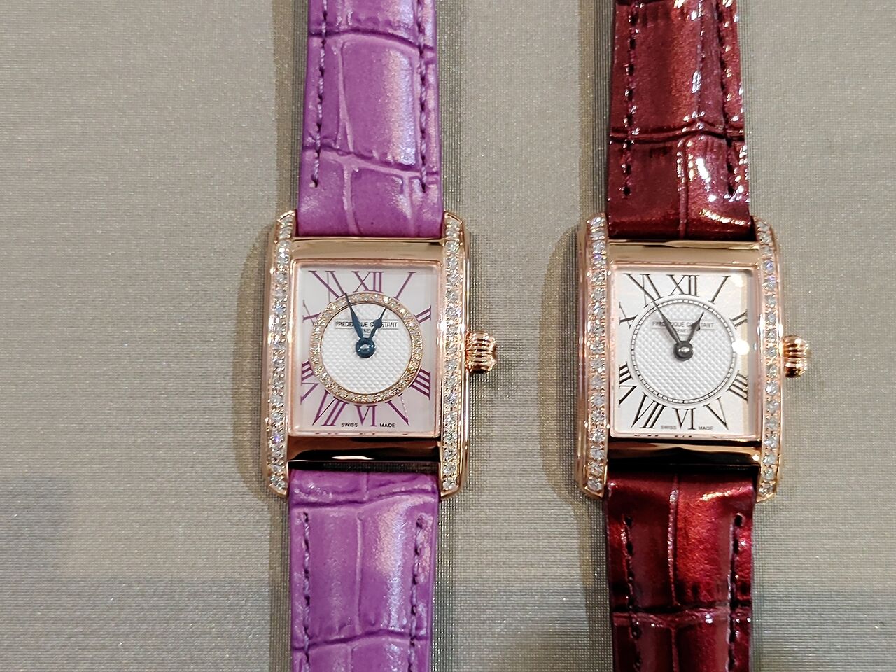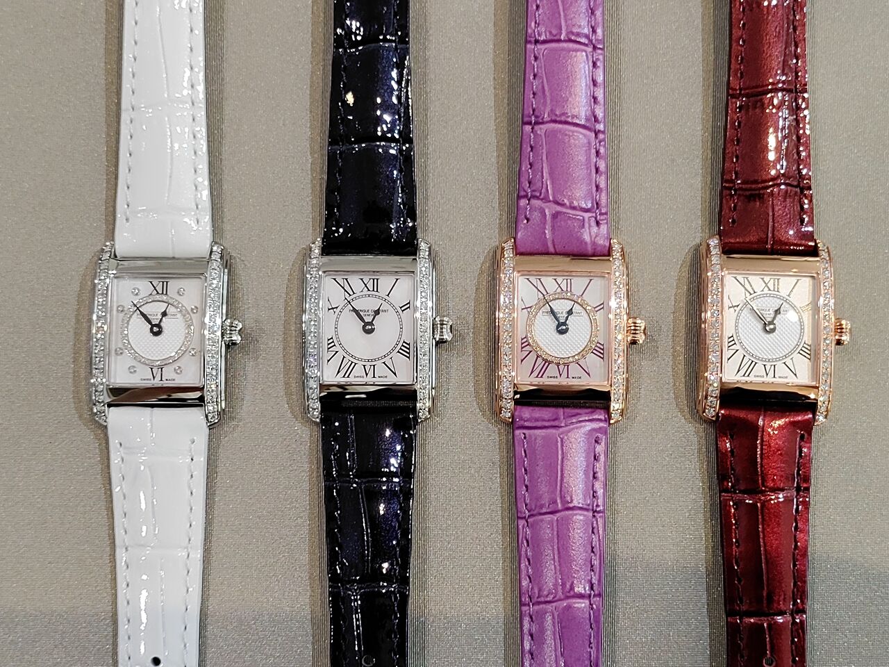 フレデリック・コンスタントの「クラシックカレレディース」ですが、ケースにダイヤモンドを
