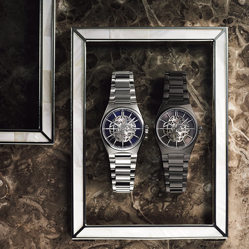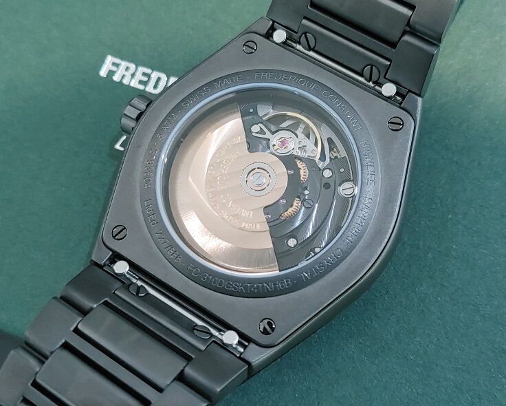 ムーブメントの地板や受けがブラックコーティングされている珍しいモデルです。