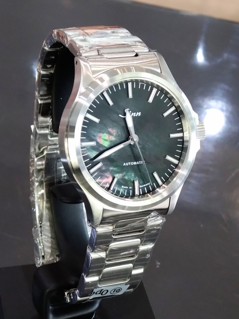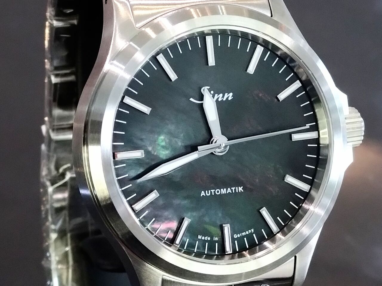 角度によって表情の変わる、ブラックマザーオブパールの文字盤が特徴のモデルです。