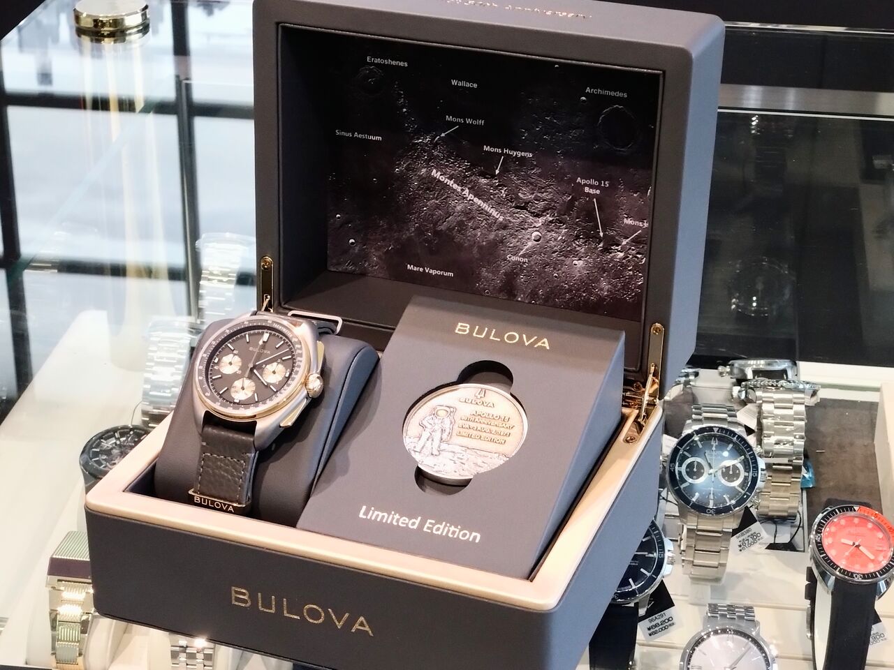 ケースバックにはシリアルナンバーと、当時の月面着陸をイメージしたデザインを刻印。