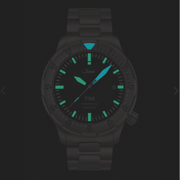 時針とダイヤル上のインデックスはグリーンに、分針と秒針、