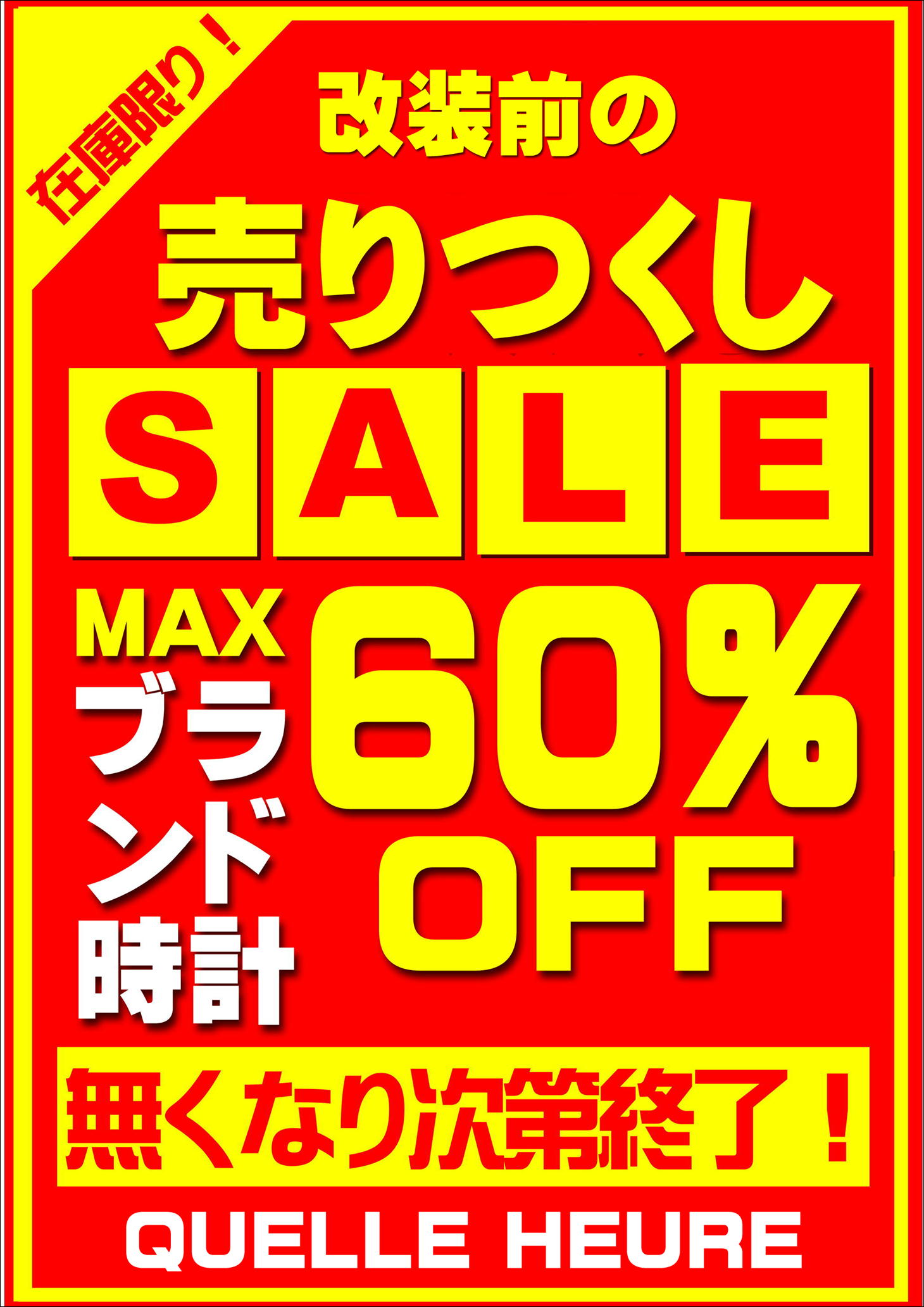 本日は明後日(1/18)から開催する「全面改装前の大セール」ご案内です。