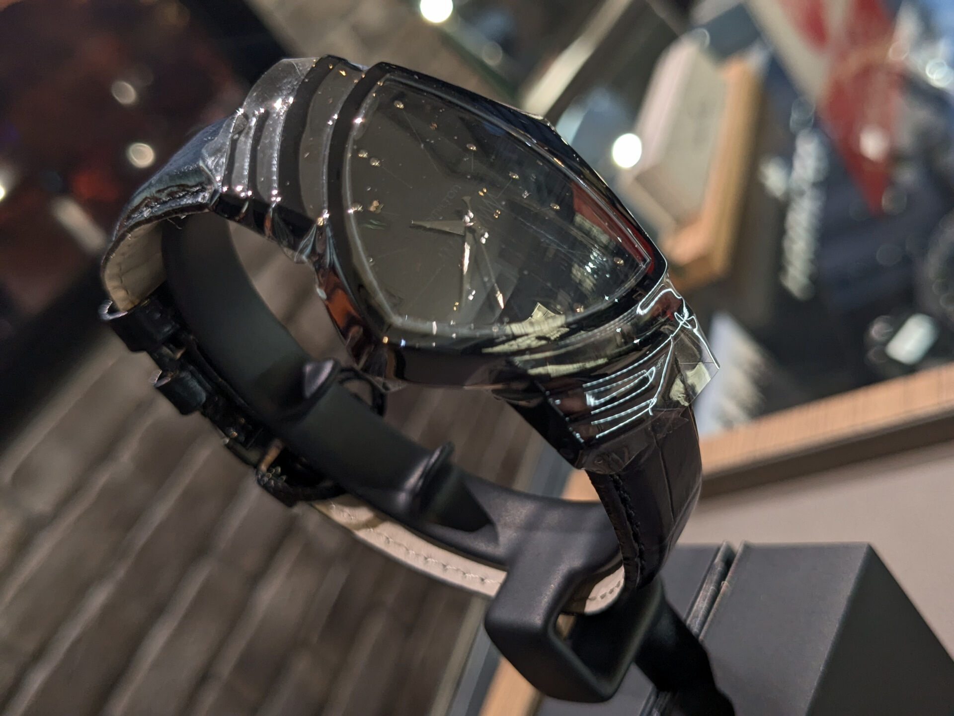 ブラックケースと型押しのブラックレザーとの相性も抜群ですね♪